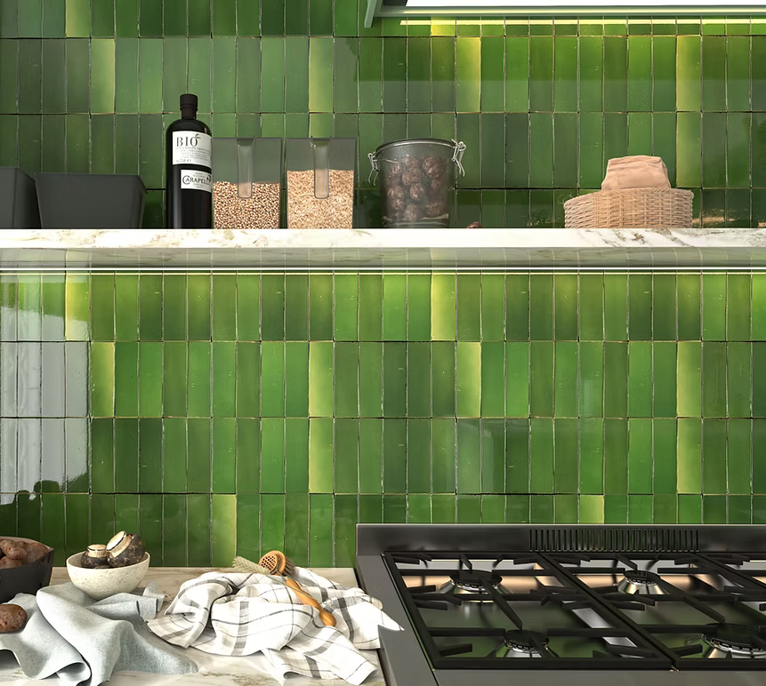 This Zellige and Bejmat style products are unique in both design and production. A genuine handmade product featuring unique style and colours, each piece a work of art, available in 8 colours and 2 sizes 100x100 mm and 50x150 mm.